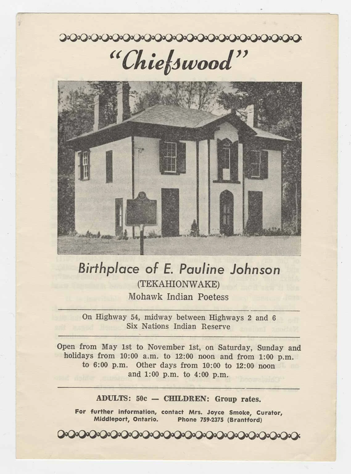 Tour of E. Pauline Johnson's House - Saturday, Oct. 3, 3:45 - 4:45 pm